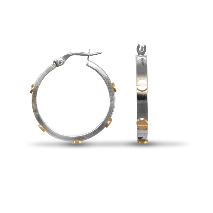 9ct WG with Yellow Screw 20mm Hoop Earrings