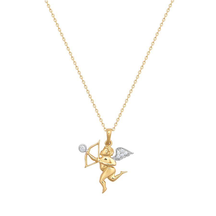 9ct YG Cz Cupid Bow, Arrow Pendant With Chain