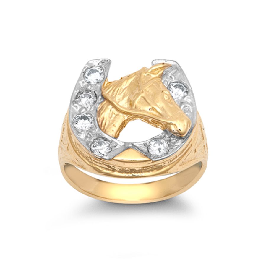 9ct YG Cz Horse Shoe/Head Ring Z