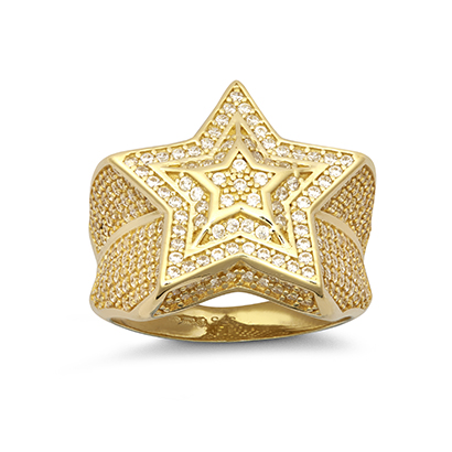 / 9ct YG Cz Star Gents Pinky Ring O